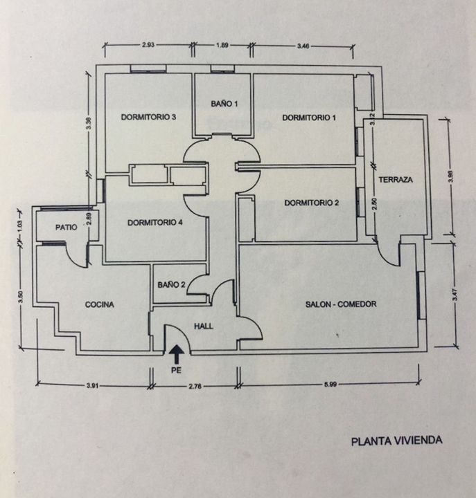The apartment offers approximately 90 m² of living space (114.43 m² built) and a well-designed layout providing ample space for both family living and guests. The property comprises a welcoming entrance hall, a kitchen with utility area, a bright living and dining room with access to a terrace, four bedrooms, one bathroom, and a guest toilet with shower.