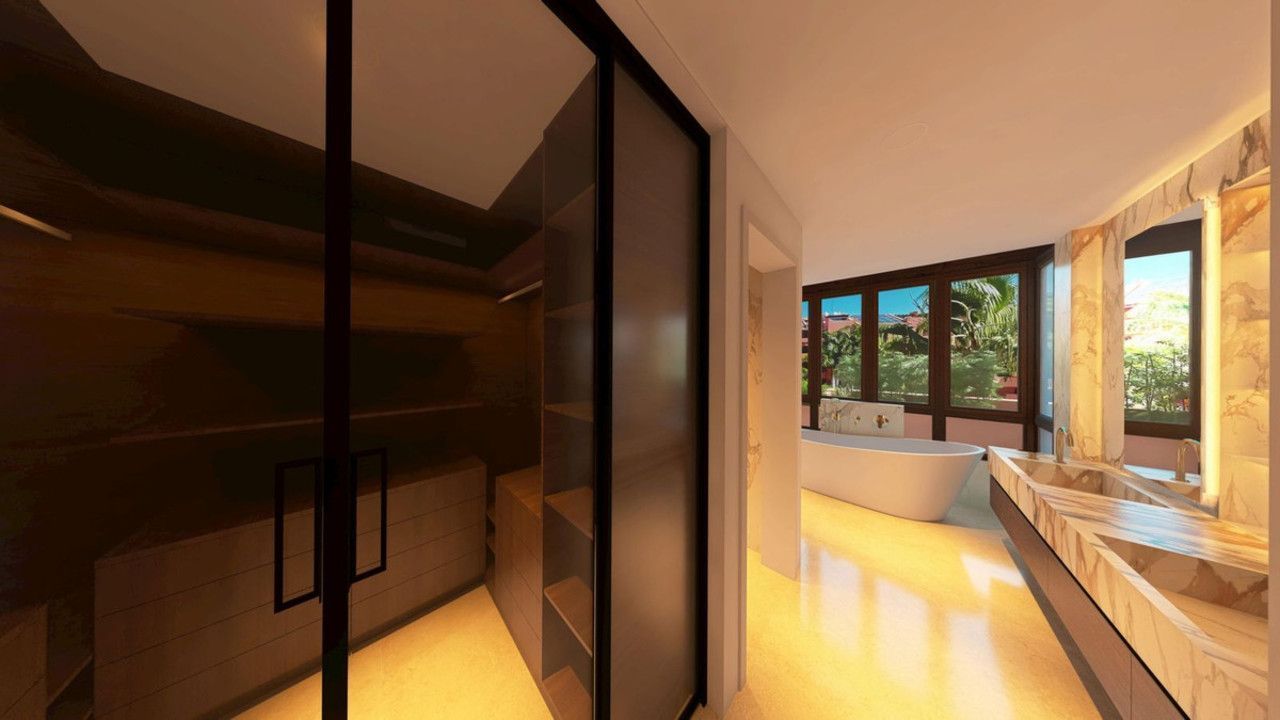 Gelegen in de prestigieuze Torre Bermeja-gemeenschap, profiteert deze woning van prachtig aangelegde tropische tuinen, een rustige sfeer en uitzonderlijke veiligheidsnormen. Bewoners hebben toegang tot een scala aan premium voorzieningen, waaronder buitenzwembaden, een verwarmd binnenzwembad, een volledig uitgeruste fitnessruimte en spafaciliteiten, evenals 24-uursbeveiliging en conciërgeservice, die allemaal onberispelijk worden onderhouden.