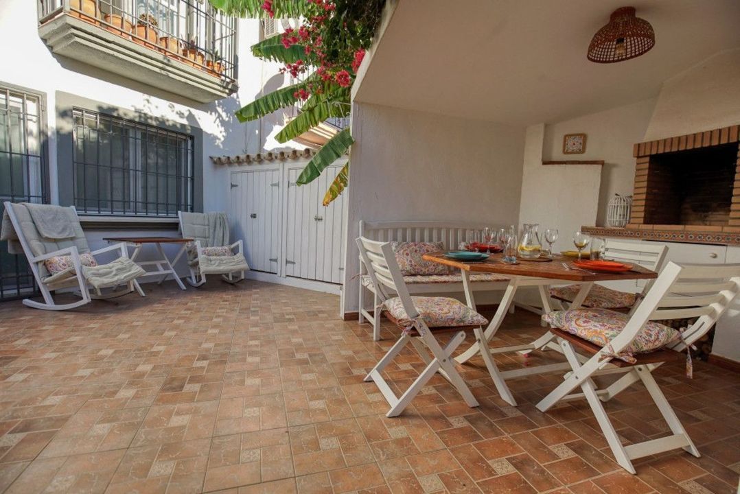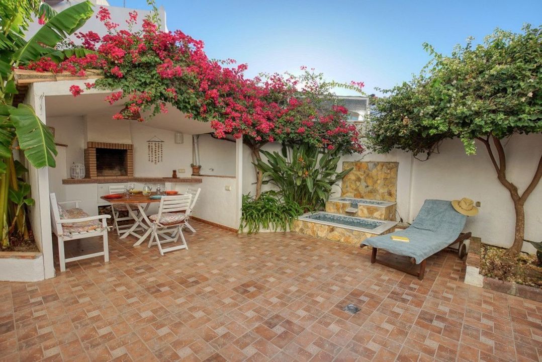 Stylish Corner Townhouse in Estepona Centre. This beautifully upgraded 4–5 bedroom property offers exceptional space, comfort and energy independence — all just a short walk to the Old Town and the beach. The plot is in a prime, quiet yet central location. Comprising of a bright living room with fireplace and new modern kitchen. 4/5 bedrooms including a large top-floor suite with space to add another bathroom. 2.5 bathrooms. Lovely private garden with built-in BBQ, water feature, and room to entertain. Private parking for 2 cars, plus storage & laundry area. 12 solar panels 5kW + battery and solar water heating, near-zero electricity bills. No community fees and low running costs. Turnkey, energy-efficient, and truly unique must-see property!