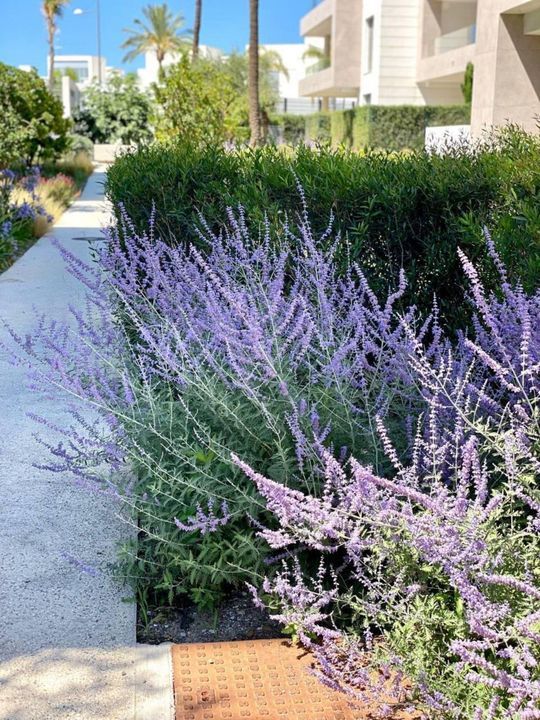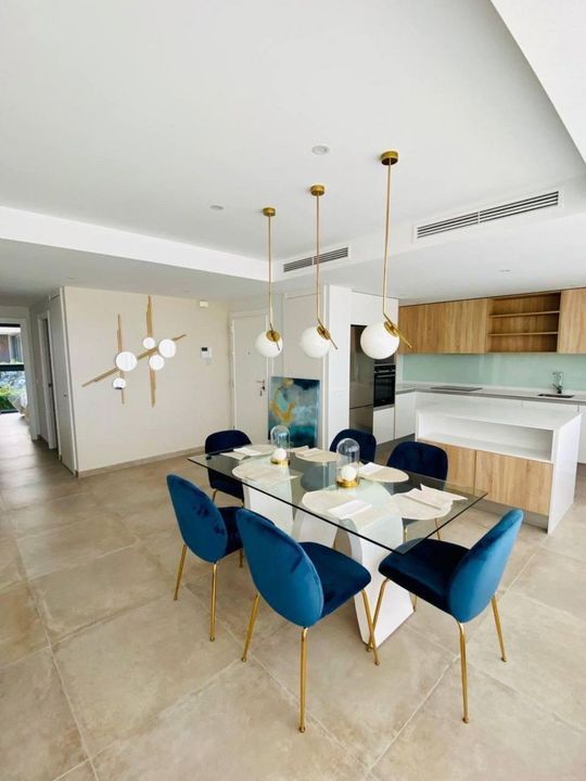 The residences, constructed in 2019, provide open-concept living areas with expansive terraces, enhancing natural light and offering views of the Mediterranean Sea and the adjacent mountains.