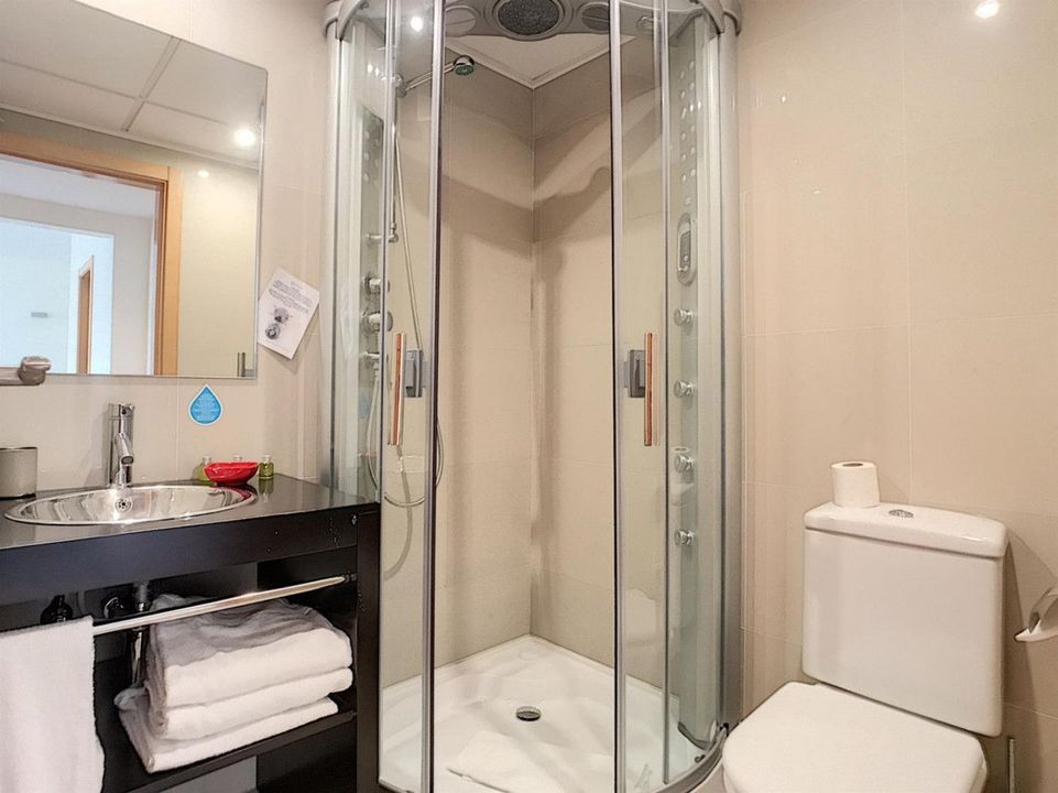 The property features 2 spacious bedrooms and 2 bathrooms, one of them en suite. The bright and generous living-dining area opens onto a beautiful 32 m² terrace, extended by a 28 m² private garden, perfectly maintained by the community gardening service.
