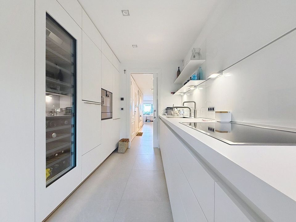 Every detail reflects sophistication and comfort: the spacious open-plan living area connects effortlessly to an expansive glass-enclosed terrace, creating a seamless flow between indoor and outdoor spaces. It's the ideal setting to enjoy sea views all year round — from serene mornings to sunset dinners framed by the horizon.
