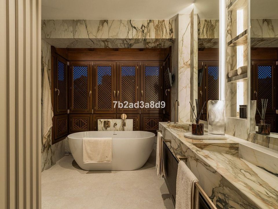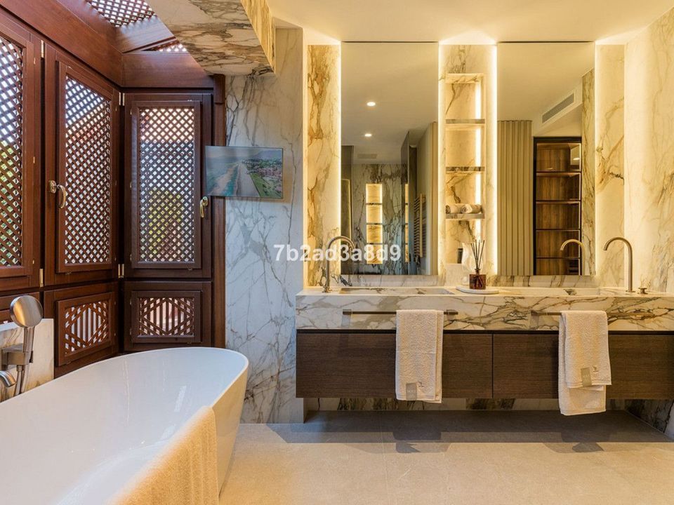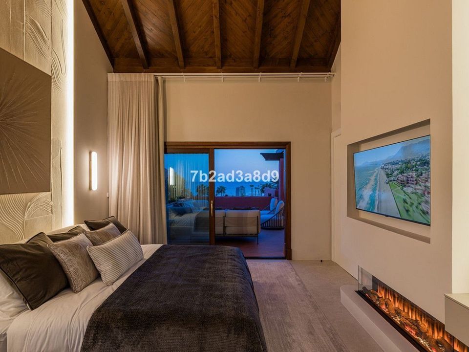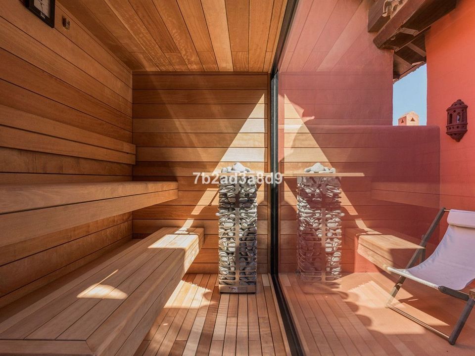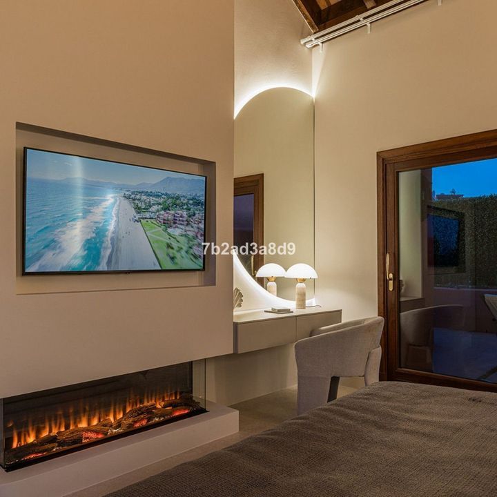 De hoofdslaapkamer is een ware oase, met een luxe inloopkast, een vrijstaand bad en directe toegang tot het bovenste terras. Buiten vindt u het ultieme buitenleven: een privé zonneterras ingericht met Kettal-meubilair, inclusief sauna en jacuzzi — perfect om te ontspannen na een dag op het strand of op een van de nabijgelegen golfbanen.