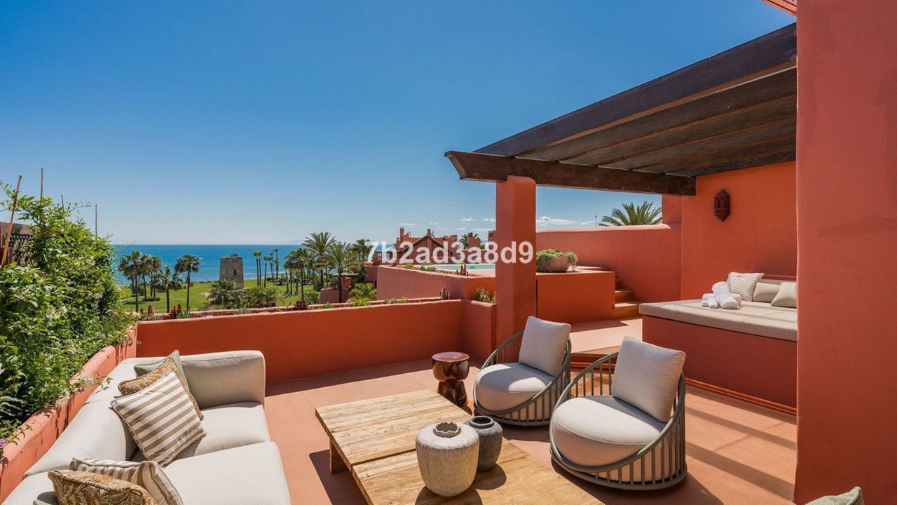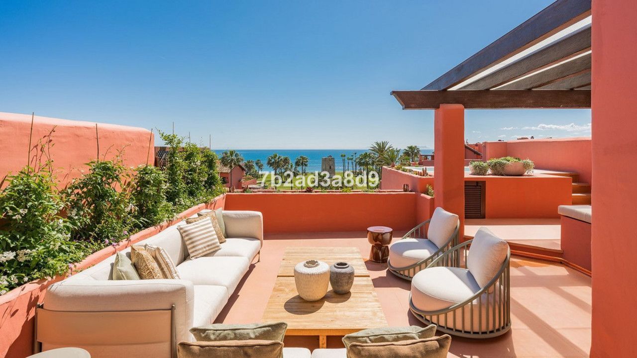 Wij presenteren Penthouse Bermeja, een elegant en volledig gerenoveerd duplex penthouse gelegen in de eerstelijns strandresidentie Torre Bermeja in Estepona.