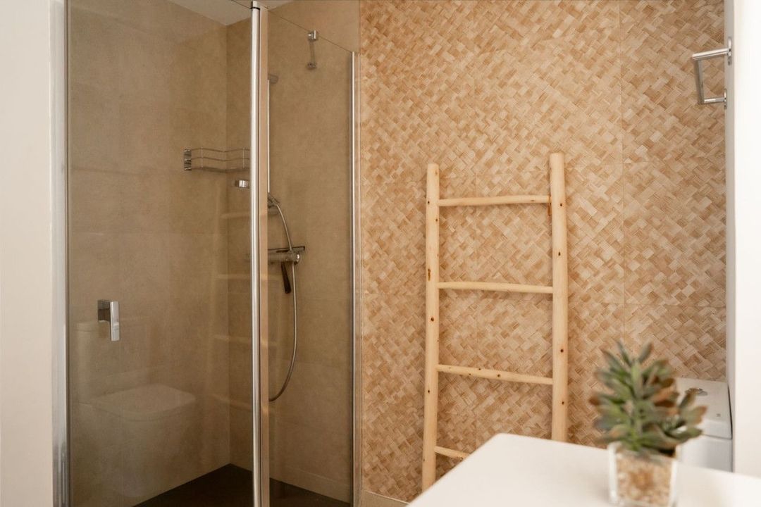 The apartment is distributed over two levels and immediately feels bright and open. The main living area flows naturally into a spacious terrace through large sliding doors, which makes the entire space feel bigger and more connected to the outdoors. It's the kind of layout that works just as well for everyday living as it does for hosting.