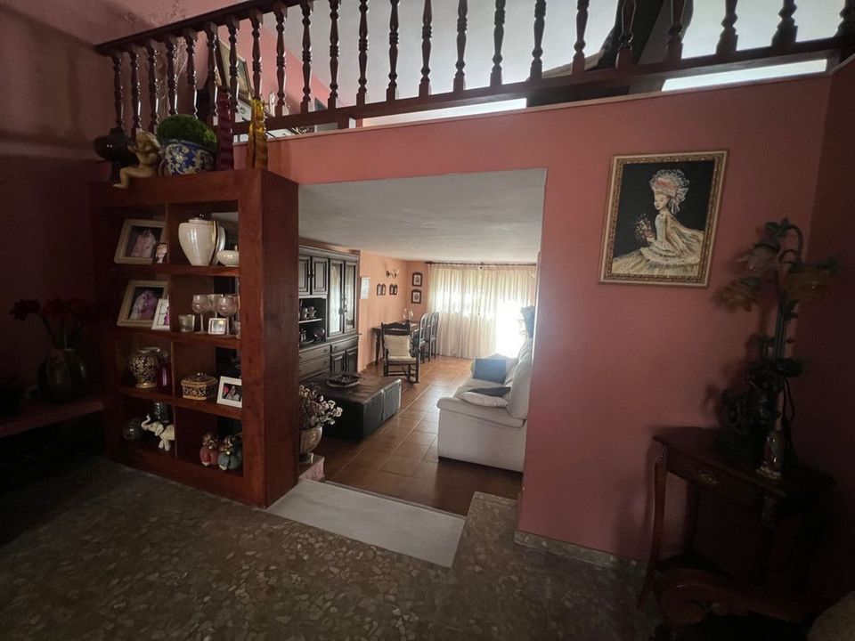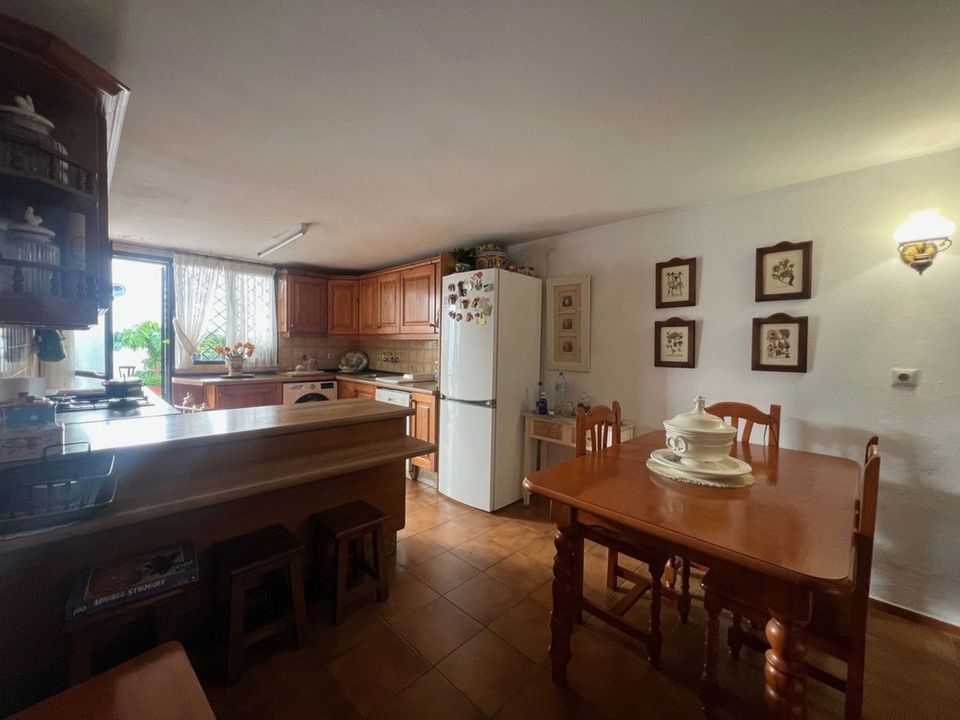 The property is spread over three floors. The ground floor features a double-height living room, two separate rooms and a fully equipped kitchen with access to the garage for several vehicles, plus a bathroom. The first floor has three bedrooms and a full bathroom with two entrances. The top floor has three very spacious double bedrooms and a full bathroom, and on the roof terrace there are 360-degree views of the town and the orchid garden area; the property is ideal for conversion into holiday apartments or as a permanent home.