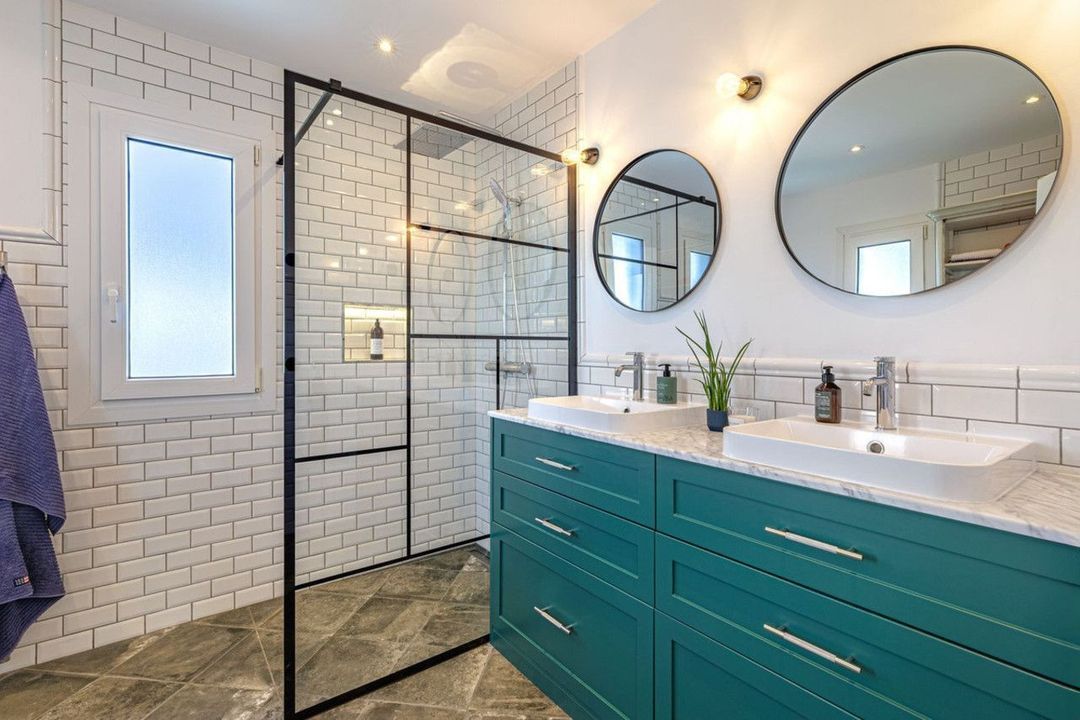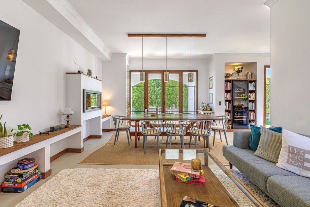 Inside, you are greeted by a clean open-plan design connecting the kitchen and living area, where large glass doors blur the line between indoors and outdoors while filling the home with natural light. The interior is finished in a modern, balanced style with a timeless feel.