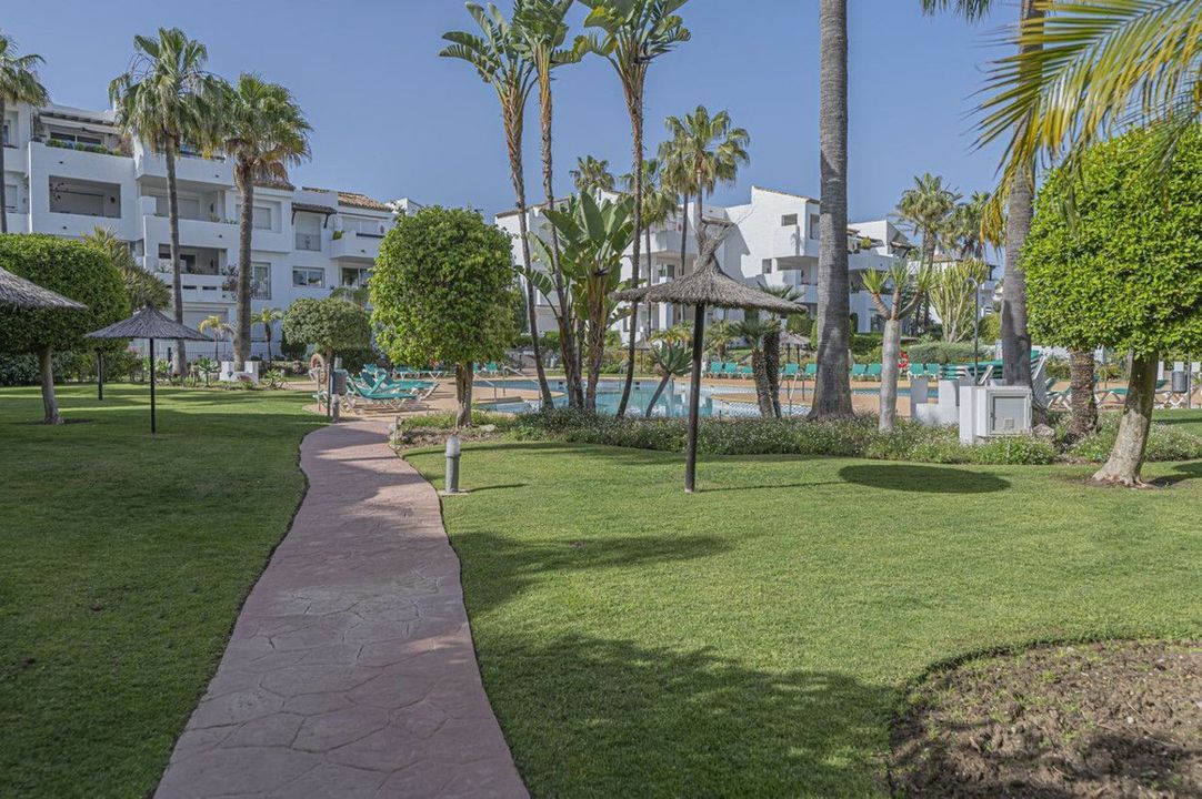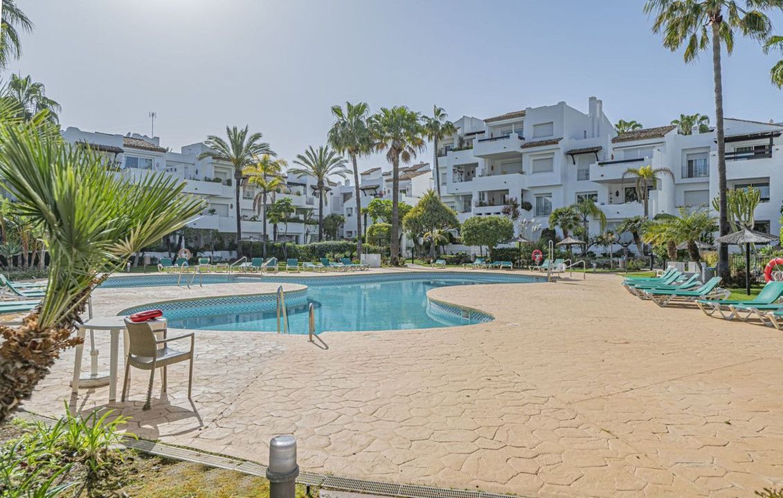 It is situated within a beautiful gated community with gardens, a communal swimming pool, and direct beach access.