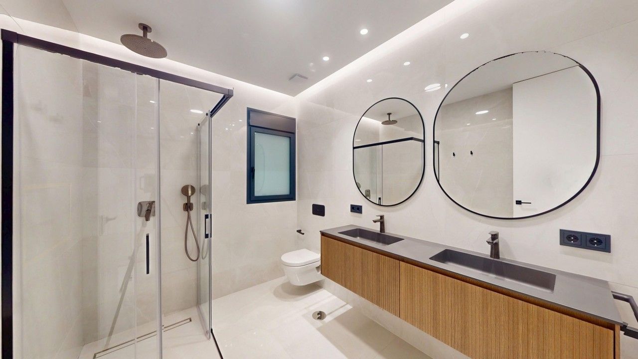 Deze villa wordt gebouwd als onderdeel van een ontwikkeling van 12 villa's in de zone Sierra Cortina in Finestrat. Deze villa's worden gebouwd en uitgerust volgens een zeer hoge standaard, waardoor potentiële kopers maximaal vertrouwen hebben in het eindproduct. De begane grond bestaat uit een woon/eetkamer/keuken met glazen schuifdeuren naar het zwembadterras, een tweepersoonsslaapkamer, een badkamer en een waskast. De eerste verdieping bestaat uit een prachtige master suite met veel kledingkasten, een en-suite badkamer en een eigen terras. Aan de andere kant van de villa is een tweepersoonsslaapkamer met ook een en-suite badkamer en een eigen terras. Het kelderniveau bestaat uit twee installatieruimtes en een carport. Buiten is er een zwembad van 7,5 x 4 meter, een zwembaddouche, een kunstgrasveld en tuingebieden met automatische irrigatie.- Belangrijkste punten:- Volledig geïsoleerde constructie- Hoogwaardige porseleinen vloer- en wandtegels in het hele huis- Granieten trappen en bordessen- Verlaagde plafonds in het hele huis- Alle binnendeuren en kasten wit gelakt- Topkwaliteit aluminium deuren en ramen met dubbele beglazing- Zonwerend glas- Gemotoriseerde rolluiken- Zonwerend glas- Zonwerend glas. Gemotoriseerde rolluiken- Ingerichte keuken met granieten werkbladen- Villeroy & Bosh badkamers met Hans Grohe kranen- Centrale airconditioning op beide verdiepingen- Ventilatiesysteem met warmteterugwinning- Aerothermisch systeem voor warm water- LED-verlichting binnen en buiten- Videocom voor de poort- 7,5 x 4m zwembad met op afstand bedienbare verlichting, voorgeïnstalleerd voor een warmtepomp- Gemotoriseerde poort voor voertuigen- Lader voor elektrische auto's- Als u meer informatie wilt over deze prachtige villa's, aarzel dan niet om contact met ons op te nemen.- Dit project is gelegen in een natuurlijke enclave aan de Costa Blanca , omgeven door een paradijselijk ecosysteem tussen de zee en de bergen.- Gelegen in Sierra Cortina , 150 meter boven de zeespiegel, geniet het van een spectaculair uitzicht op de skyline van Benidorm, de baai van Finestrat en El Puig Campana.- Deze exclusieve ontwikkeling ligt naast het luxe Asia Gardens Hotel & Thai Spa en heeft, naast andere diensten, een Private Sports Club, 24-uurs privébewaking met videocamera's en bewakers en een fantastisch avant-garde restaurant. Bovendien kun je in slechts 5 minuten met de auto genieten van de veelheid aan diensten die worden aangeboden door zowel Benidorm als de rest van de gemeenten die het omringen.- Het gebied biedt ook verschillende privéscholen met een internationaal curriculum , dus het voldoet aan nog een van de eisen voor een gezin met kinderen.