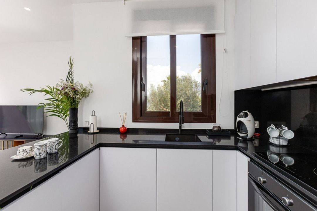 Open ruimtes en kamerhoge ramen op de begane grond zorgen ervoor dat u de hele dag zonlicht in huis heeft! Het creëert een spectaculaire plek om te werken, films te kijken of gewoon te ontspannen. De open keuken wordt geleverd met moderne meubels en een praktische indeling. De oppervlakte van de begane grond is 70,3 m², waarvan bijna 36 m² is verdeeld over de woonkamer, eetkamer en keuken. De combinatie van hout en natuursteen geeft de woning een moderne en rustieke uitstraling. Grote ramen laten de frisse zeebries binnen door de bloeiende tuin en het zwembad. Al deze elementen maken de villa bijzonder en vrolijk. Het dakterras boven heeft een 360° uitzicht op zee en bergen. De eerste verdieping heeft ook een optioneel terras dat u naar wens kunt inrichten.