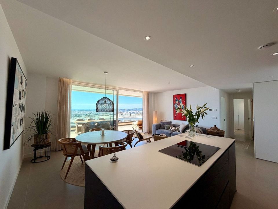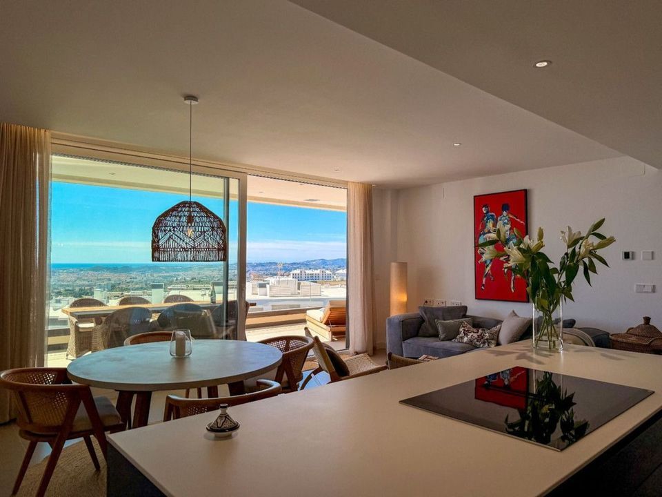 This contemporary penthouse offers breathtaking, uninterrupted views across the Mediterranean Sea, Fuengirola marina, and the coastline — creating a spectacular setting from morning light to evening sunset.