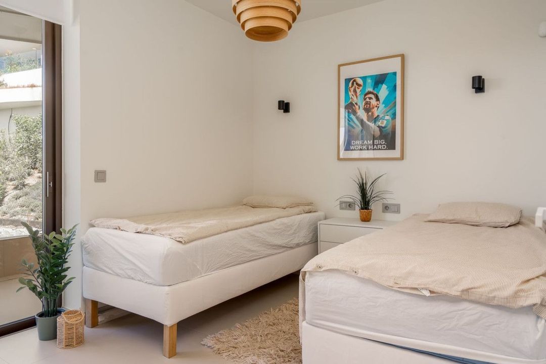 Het appartement beschikt over twee ruime slaapkamers en twee moderne badkamers met vloerverwarming, waarvan één en-suite. Dankzij de hoekligging geniet de woning van uitzonderlijk veel natuurlijk licht gedurende de hele dag en een heerlijk gevoel van ruimte.