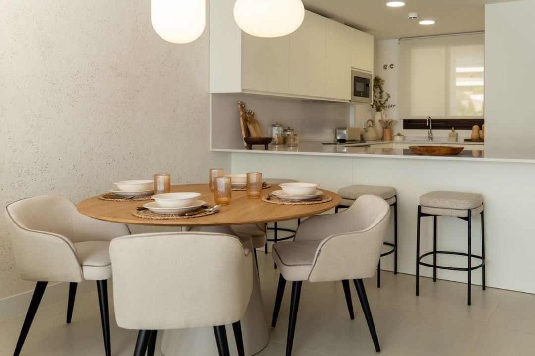 Het complex is verdeeld over drie moderne gebouwen van vier verdiepingen en biedt verschillende woningtypes: tuinwoningen, appartementen met ruime terrassen en Sky Solarium-woningen met privé dakterrassen en panoramisch zeezicht. Alle woningen beschikken over open indelingen, grote raampartijen en royale buitenruimtes die zijn ontworpen om natuurlijk licht en uitzicht te maximaliseren.
