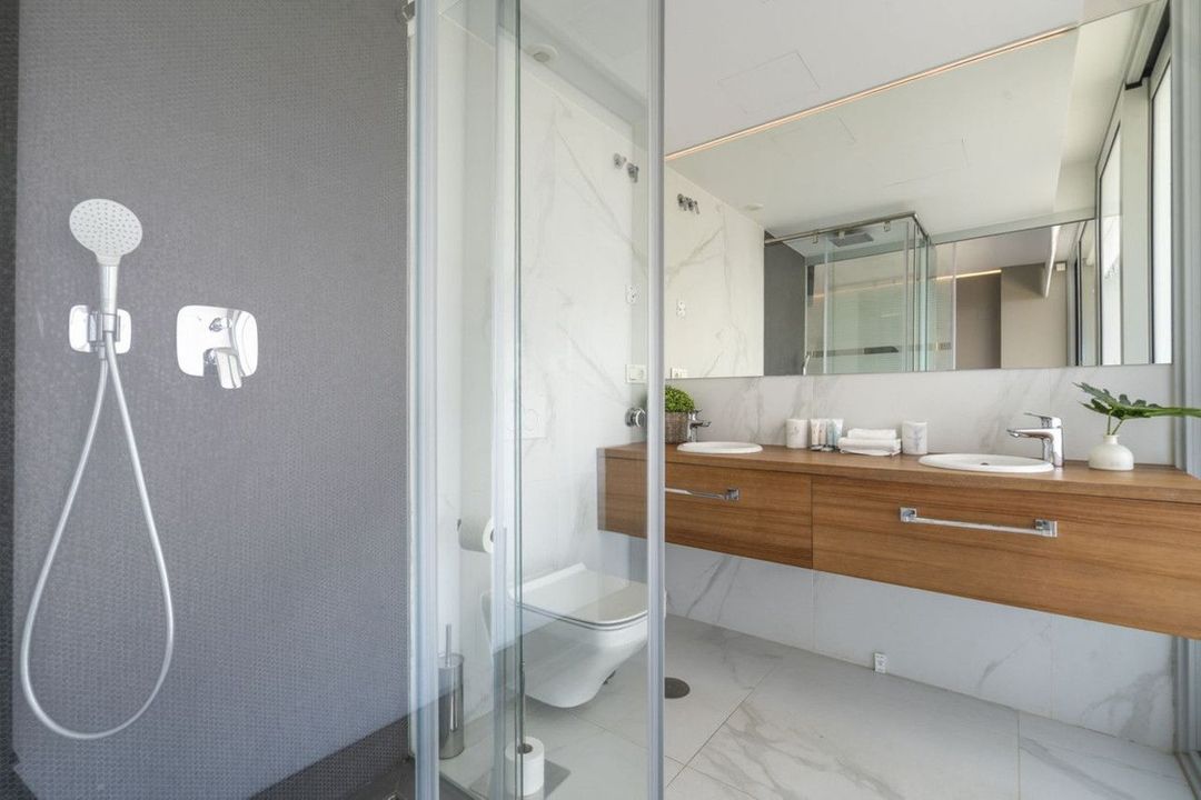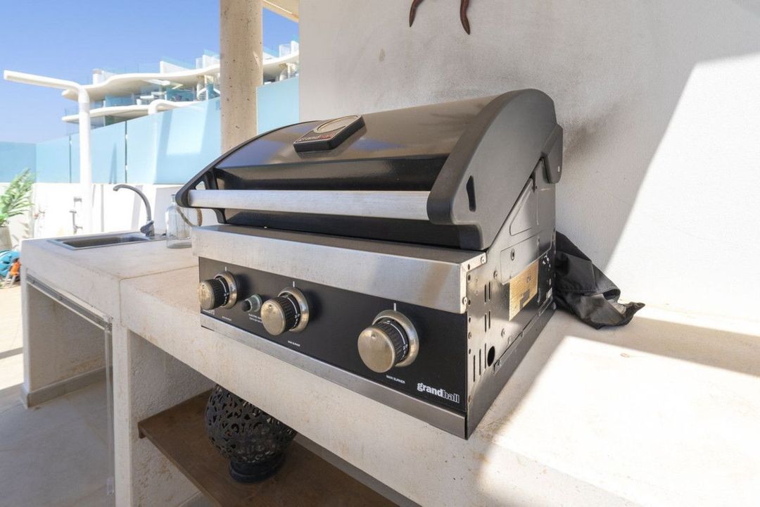 Completed in 2021, the apartment is distinguished by the largest terrace in the complex. The private rooftop solarium includes a built-in BBQ, Jacuzzi and outdoor shower, creating a serene retreat for sun-filled days and evenings with friends.