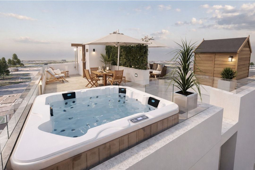 De penthouses beschikken over ruime privé solariums, ideaal om te zonnebaden, een chill-out zone te creëren of buitenbijeenkomsten te houden met uitzicht op de mediterrane lucht. Het eigentijdse ontwerp en de premium materialen zorgen voor een elegante en gastvrije sfeer in elke hoek.