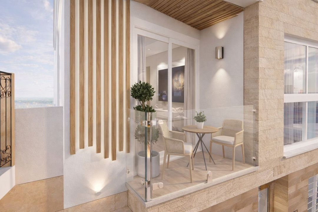 De penthouses beschikken over ruime privé solariums, ideaal om te zonnebaden, een chill-out zone te creëren of buitenbijeenkomsten te houden met uitzicht op de mediterrane lucht. Het eigentijdse ontwerp en de premium materialen zorgen voor een elegante en gastvrije sfeer in elke hoek.