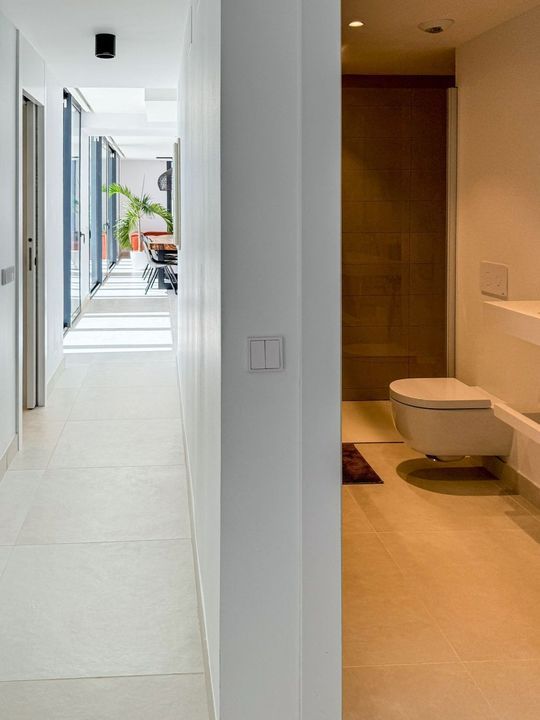 Step into a world of relaxation and entertainment with a private plunge pool that overlooks the mesmerizing sea. Enjoy the seamless indoor-outdoor flow, as automatic electric awnings and sun blinds provide shade when needed. In winter you will even be able to enjoy the underfloor heating in all floors.