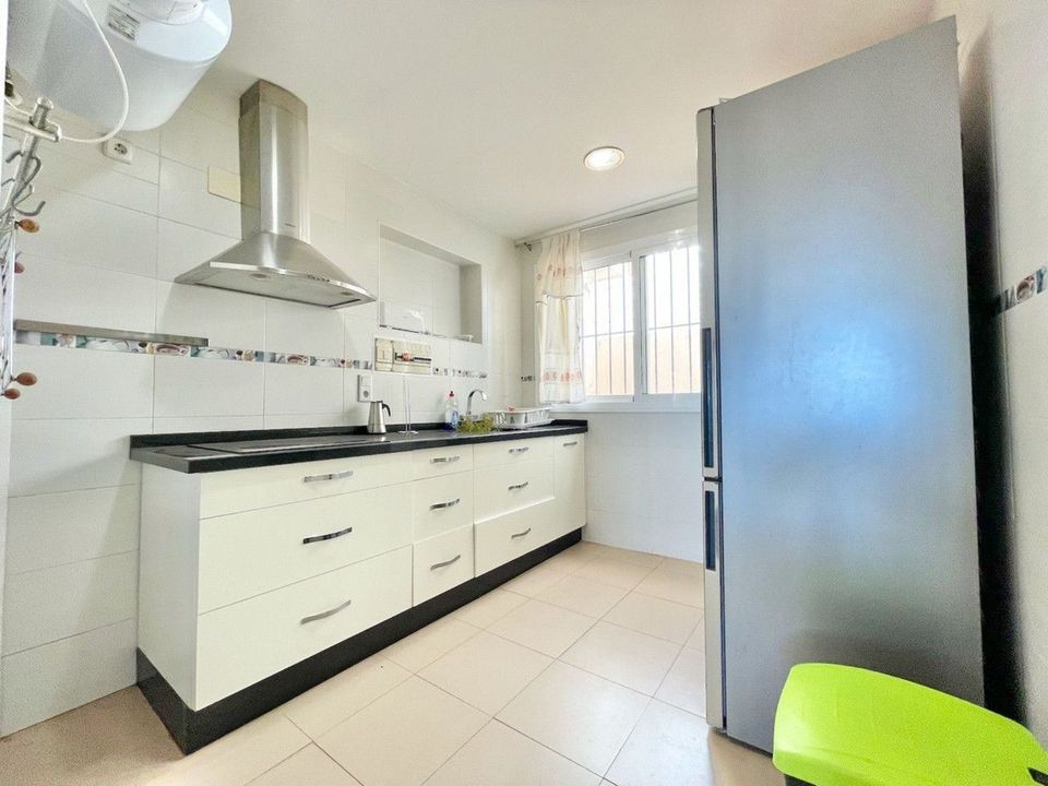 Large property next to the beach with sea views, 5 bedrooms, 2 bathrooms, 2 kitchens, one on each floor, 2 living - dining rooms, several terraces and a private garage. Excellent location just 1 block from the beach, close to all kinds of restaurants and shops. Ideal for living, vacationing or investing.