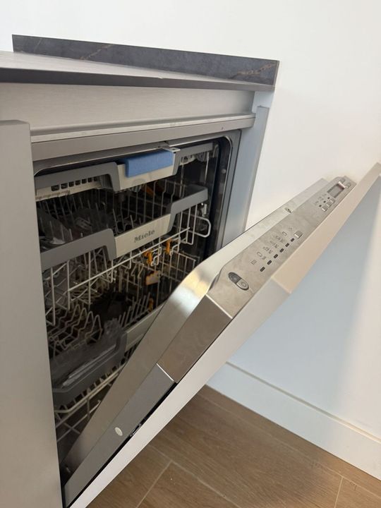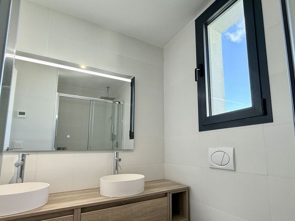The apartment boasts a bright and functional layout, including a spacious master suite and open-plan living areas filled with natural light. The fully fitted kitchen comes with high-end appliances, and both bathrooms benefit from underfloor heating. Additional features include built-in wardrobes, two private parking spaces, and a storage room.