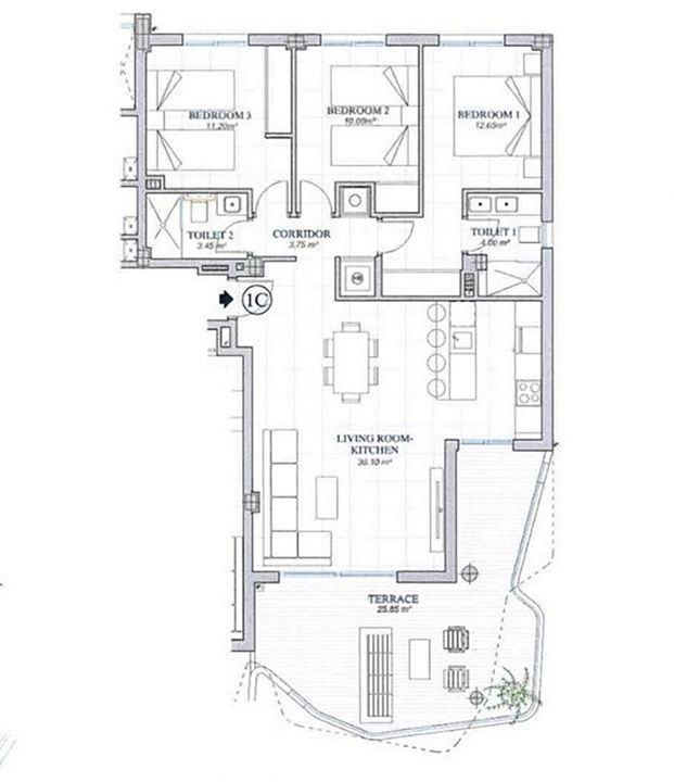 2 Bedrooms, 2 Bathrooms, Built 97 m², Terrace 25 m².