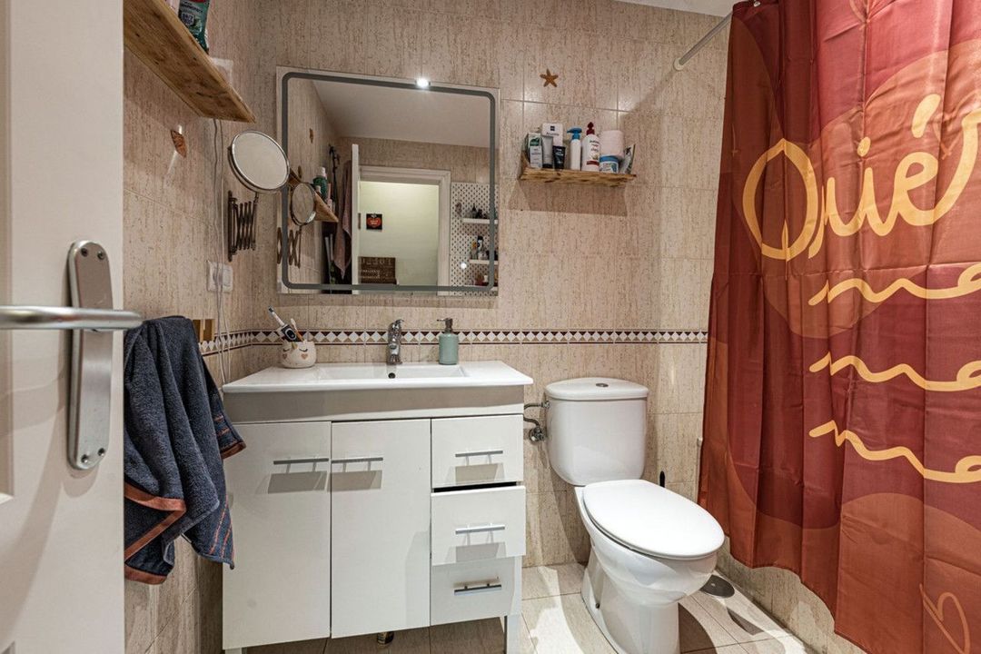 The apartment features a full bathroom and an additional guest toilet, ensuring everyday comfort. The opened kitchen flows into a bright and spacious living room, with direct access to a large private patio, perfect for relaxing outdoors.