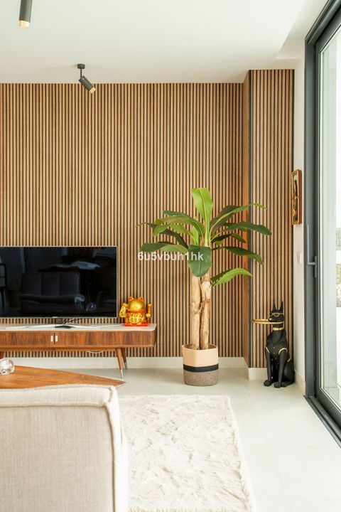 Bright open-plan living area with a high-end kitchen featuring premium finishes and upgraded appliances from NEFF. Floor-to-ceiling windows create a seamless indoor-outdoor experience and flood the home with natural light.