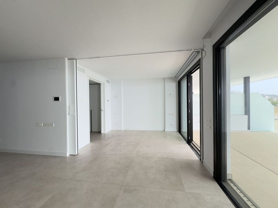 Het appartement zelf combineert elegantie en comfort, met een open interieur dat baadt in natuurlijk licht en kamerhoge ramen die naadloos overgaan in een ruim terras – de perfecte plek om te genieten van adembenemende zonsondergangen over de baai van Fuengirola.