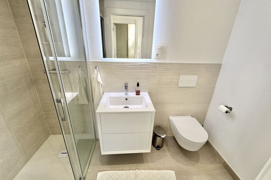3 tweepersoonsslaapkamers, 2 luxe doucheruimtes, een mooie moderne open leefruimte met een woonkamer, eetkamer en een designkeuken. Aparte bijkeuken met aansluiting voor wasmachine en droger. Fantastisch uitzicht op zee op het zuidwesten vanuit de panoramische ramen, hoogwaardige vloeren door het hele huis en een state-of-the-art smarthomesysteem voor modern wonen. Alle slaapkamers zijn voorzien van inbouwkasten met voldoende opbergruimte.