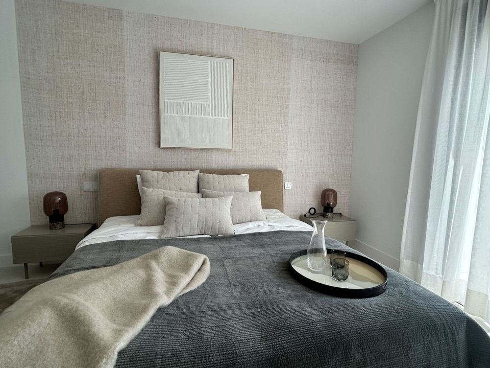 The property comes fully furnished with high-end designer pieces and a comprehensive interior design project by Ikonia Ilusion&Arte, combining selected furniture, lighting, and contemporary tones to maximize the feeling of spaciousness.