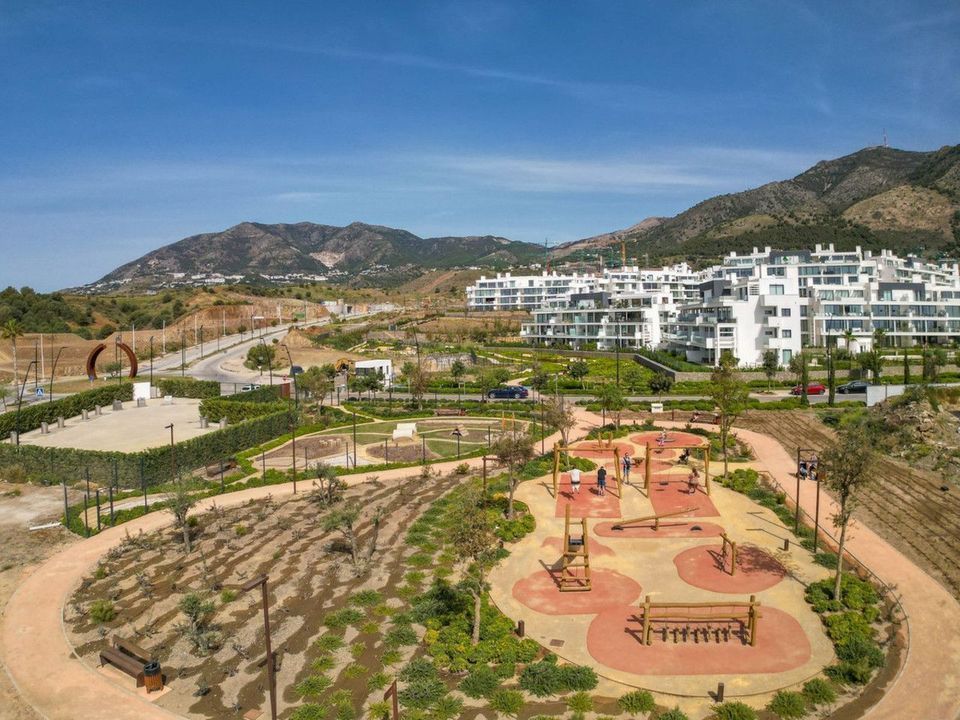 Higuerón West is an innovative residential project on the hillside overlooking Fuengirola, set within a unique and privileged location. Spanning 500,000 m², the development offers a wealth of green spaces, walking, running and cycling trails, children's play areas, a pet park, organic gardens, shuttle service to the Beach Club, and stations for bicycles and electric cars. A co-working space is also included, designed to encourage networking and creativity.