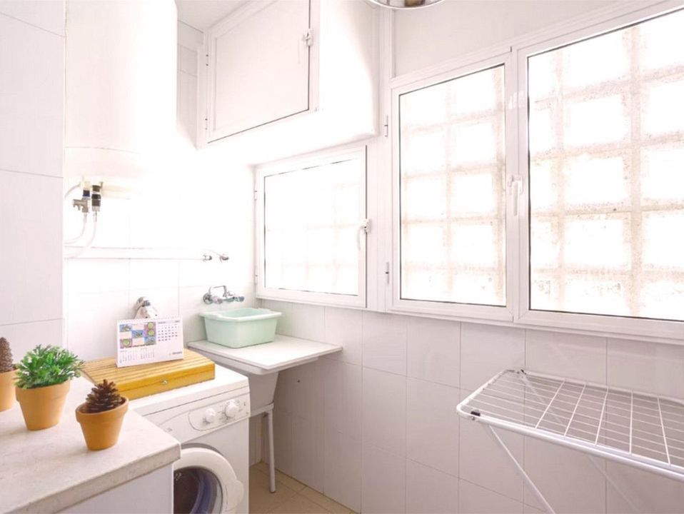 It features a spacious, fully equipped independent kitchen with a laundry room.