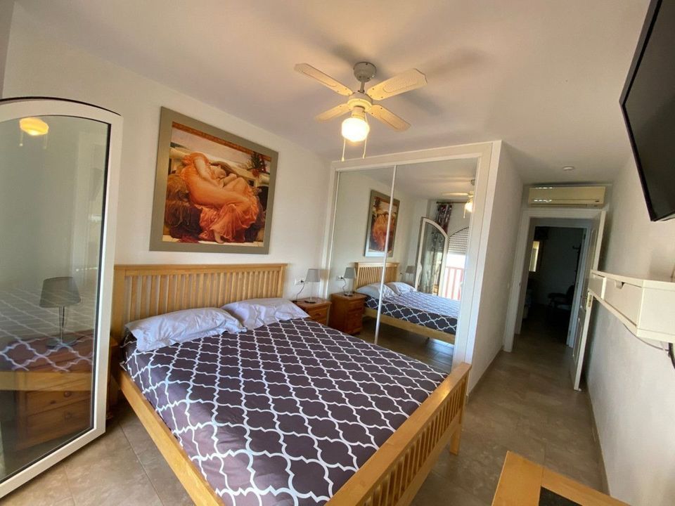 Exclusive apartment on the seafront, facing south, with impressive views of the city, coast, sea, mountains and beach. This luxurious property with 97m² interior, and 4m2 sea front terrace and an 8m2 interior patio offers a furnished and equipped kitchen, ideal for gastronomy lovers. The property has hot/cold air conditioning, fitted wardrobes, elevator and balcony.