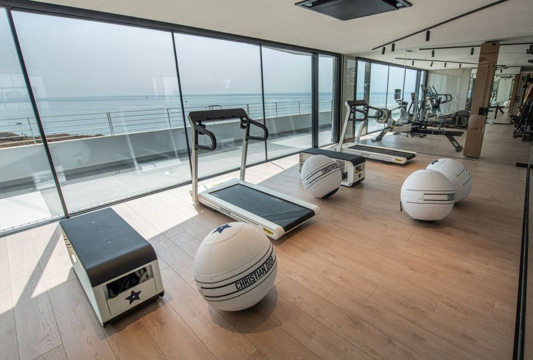 The amenities are second to none: massage room and wellness area, solarium and outdoor chill-out zones, as well as a heated indoor pool for year-round enjoyment. For cinema lovers, there is a private screening room, along with a state-of-the-art Technogym fitness center featuring equipment designed by Christian Dior. The elegant lobby and stylish lounge areas create a welcoming atmosphere perfect for socializing.