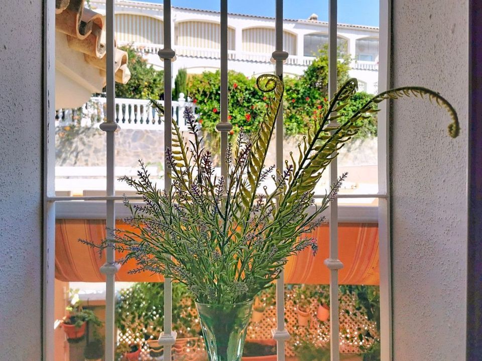 Corner townhouse in the quietest area of Los Pacos, a residential complex of 16 high-quality townhouses built in 2006. The property has a floor area of 244 m2, distributed over the ground floor, which has an entrance porch-patio, a separate fitted kitchen with appliances, toilet, spacious living-dining room and a small room that can be used as a separate bedroom. On the first floor there are two bedrooms (previously 3), one of which is very large with an en-suite bathroom, and a full bathroom with shower in the hallway. Upstairs there is a spacious attic that could be another bedroom, with a terrace. In the basement there is an open-plan area with a kitchen and a garage for two cars. The property has a communal area with a swimming pool and green area. Ideal property for families, monthly community fees: €60. Annual property tax: €650.