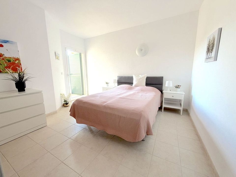 The open-plan living and dining room has direct access to the spacious terrace. The apartment is sold fully furnished and includes a private underground parking space and a storage room.