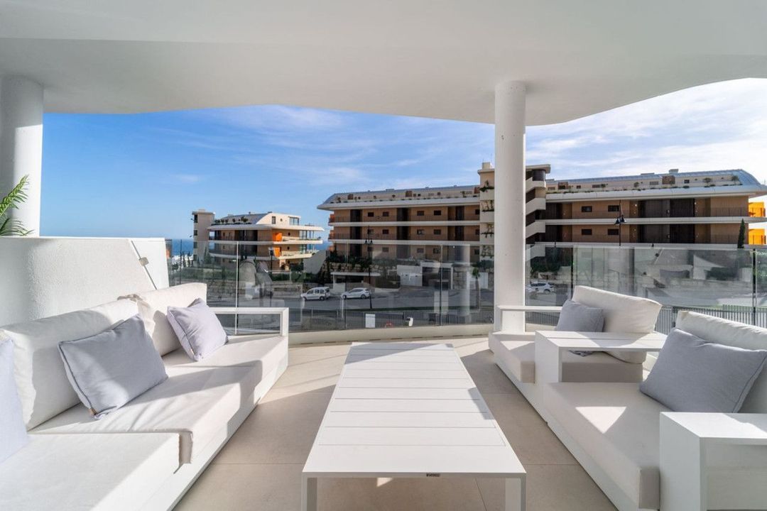 Elegant south facing apartment, in an exclusive urbanization in El Higuerón area, with 3 bedrooms, 2 bathrooms, spacious living-dining room, open plan kitchen fully furnished and equipped with electrical appliances, spacious terrace of 25m2 with urban and partial sea views.