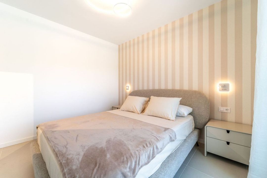 Brand new east facing apartment, with 3 bedrooms, 2 bathrooms, spacious living-dining room, open plan kitchen fully furnished and equipped with electrical appliances, laundry area with washing machine, spacious terrace of 22m2 with mountain views and partial sea views. Master bedroom with walk-in closet and ensuite bathroom. Air conditioning hot and cold, built-in wardrobes in all bedrooms and living room, blinds in bedrooms and living room. Includes one parking space and storage room.