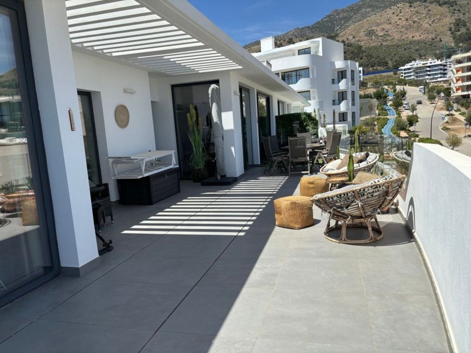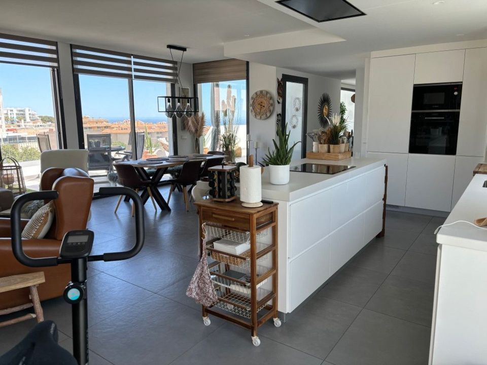 Fantastic penthouse in the sought-after area of Higueron West. The apartment has large, lovely rooms and features a super spacious living room with a beautiful open kitchen offering a wonderful view from all sides. Additionally, there are terraces on both sides with access from the living room and kitchen. There is also an enclosed laundry room next to the kitchen. A large master bedroom with a lovely modern bathroom and plenty of closets. The second bedroom is also spacious and has its own bathroom. Furthermore, there are two parking spaces under the building right next to the entrance and a nice storage room. The homeowners' association offers the most beautiful areas and pools. The large popular sports center is very close, offering padel tennis, fitness, and much more. Truly an apartment that must be seen