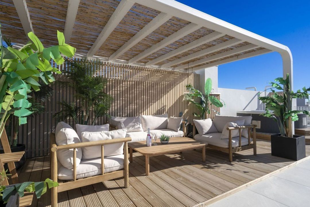 Het absolute hoogtepunt van dit penthouse is het privé dakterras. Hier kun je genieten van een panoramisch uitzicht op de kustlijn, dineren in de buitenlucht of simpelweg ontspannen in de zon terwijl je het spectaculaire landschap bewondert.