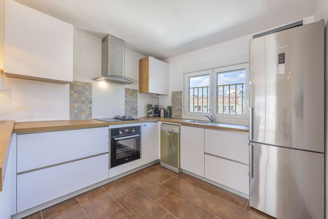 It consists of three bedrooms, including in the main one an en suite bathroom and fitted wardrobe, the two renovated bathrooms have a shower, the main bedroom and one of the secondary bedrooms have a french balcony with west orientation The double glazed windows are an excellent option to improve the security and insulation of your home, it also has electric shutters. This type of window has a system that allows a more airtight seal, which helps to maintain the interior temperature and reduce exterior noise. The recent refurbishment and the fully equipped designer kitchen are great advantages, and the west facing terrace will surely be a perfect place to enjoy the sun and natural light, and the flat is very bright in all rooms.