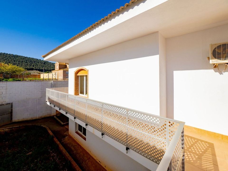 The property features 4 bedrooms and 3 bathrooms, including a master suite. At its heart lies a central Andalusian-style patio, the perfect focal point for the rest of the home. With its glass roof, this space is designed to maximize natural light, creating an inviting atmosphere for hosting guests and relaxing. The kitchen comes fully equipped with high-quality appliances and a spacious pantry. Additional comforts include air conditioning, a fireplace, and an elevator that leads to the lower level—an area with great potential to be transformed into additional living space, install a pool, or create a small garden or orchard.