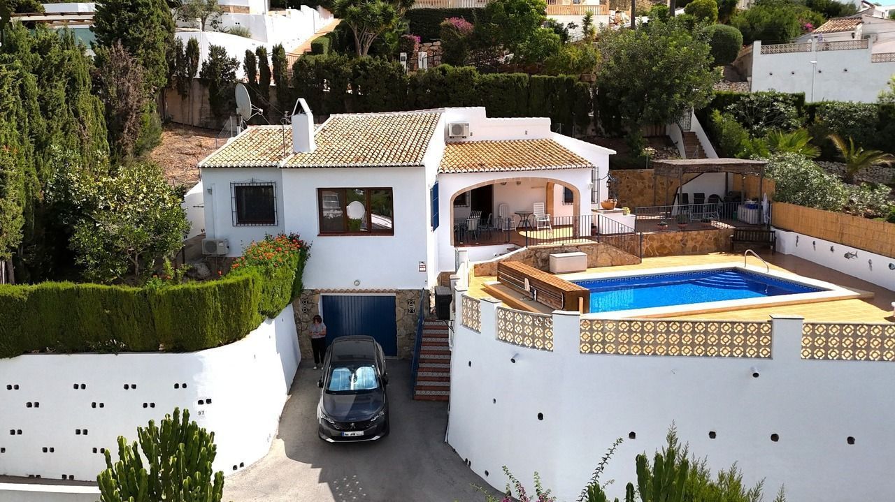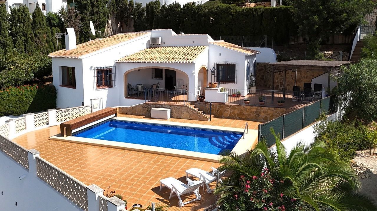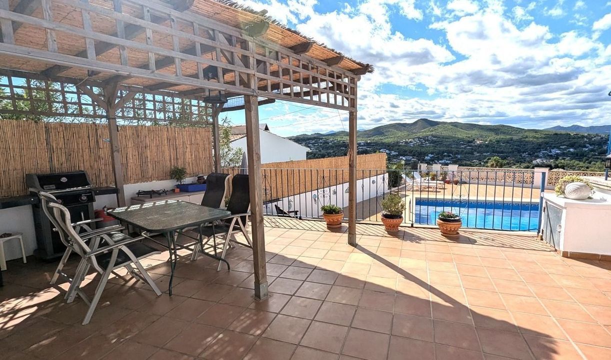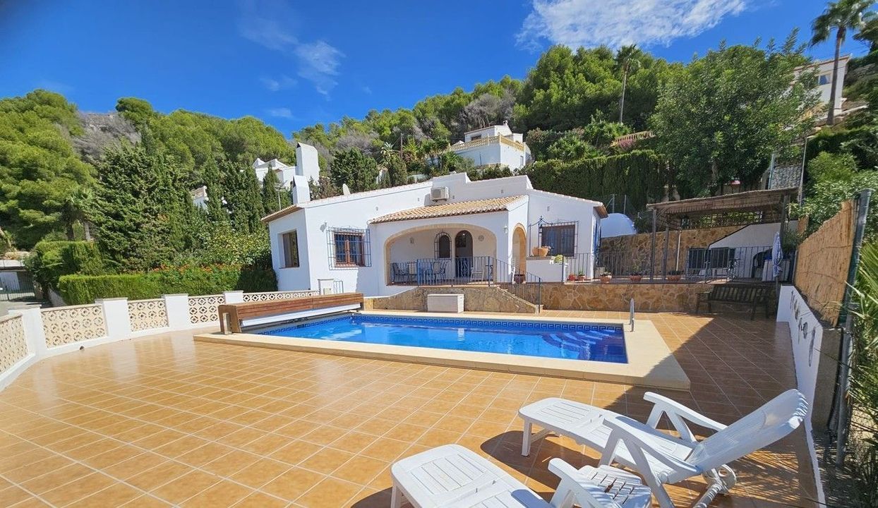 Super family 3 bedroom villa for sale, located in the highly desirable residential area of Rafalet in Javea, on the Costa Blanca. South-west facing, the property offers panoramic views stretching from the traditional Spanish town of Benitachell near Moraira, across to the Segaria mountains behind Denia, with some of the most spectacular sunsets in the region. Within easy reach you will find excellent restaurants including one with a Michelin star, beautiful walking and cycling routes, and quick access to the coastal towns of both Javea and Moraira with their beaches, marinas, shops, restaurants and all amenities. The villa is also close to top international schools such as Lady Elizabeth School and Xabia International College, as well as excellent local schools. Accessed from a quiet cul de sac, the main living area is on one level and includes a welcoming open naya leading to the hall, the master bedroom with en-suite shower room, fitted wardrobes and air conditioning, a spacious living and dining room with beamed ceilings, pellet burner, air conditioning and tosca arch, plus a fully fitted separate kitchen. The hall also leads to a family shower room and two further double bedrooms, both with fitted wardrobes and air conditioning. Outside, there is a 9m by 4m heated salt-water pool with a remote-controlled safety cover, set within a private sunny terrace with steps up to the naya and a covered pergola with built-in BBQ, perfect for entertaining. The property also benefits from a larger than average garage with water and electricity connections. With its combination of privacy, comfort and breathtaking views, this villa is a perfect family home in one of the most attractive areas of the Mediterranean. Key features: South-west orientation with panoramic mountain and sunset views One-level main living accommodation Three double bedrooms all with air conditioning and fitted wardrobes Spacious living and dining room with beamed ceilings and pellet burner Heated 9m x 4m salt-water pool with remote-controlled safety cover Private sunny pool terrace with pergola BBQ area Large garage with water and electricity This villa combines comfort, privacy, and stunning views—making it an outstanding opportunity for anyone wishing to enjoy the best of life on the Costa Blanca.