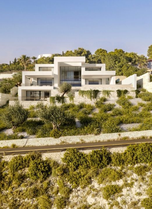 Het beschikt over 4 ruime slaapkamers en 6 badkamers, evenals een gym, kantoor, opslagruimte en overdekte parkeergelegenheid voor twee auto's. De spacious open terrassen (140 m²) en het infinity zwembad bieden spectaculaire uitzichten op de zee en het strand van Granadella, waardoor de perfecte plek ontstaat om te genieten van de mediterrane levensstijl. De verwachte opleverdatum voor deze villa is eind 2026 of begin 2027.