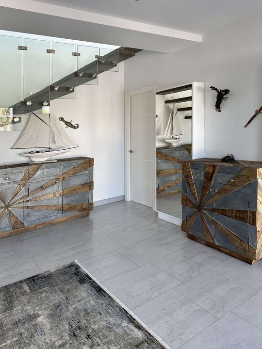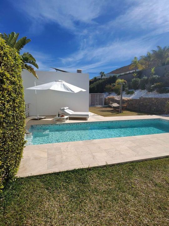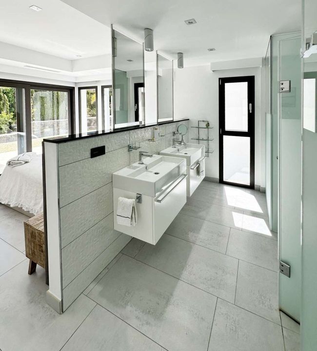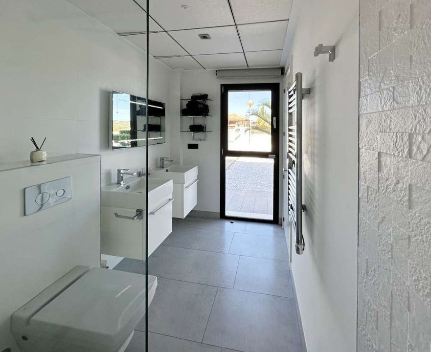 Verrijk uw levensstijl in dit prachtige meesterwerk van 525 vierkante meter, waar luxe en modern wonen samenkomen. Verdeeld over drie zorgvuldig ontworpen verdiepingen biedt het een ongeëvenaarde woonervaring. De open woonkamer baadt in natuurlijk licht dankzij de kamerhoge ramen, en een opvallende zwevende trap met glazen balustrades vormt een prachtig middelpunt en verbindt alle verdiepingen.Er zijn vijf ruime slaapkamers, waaronder een luxe hoofdsuite van 27 vierkante meter, en acht elegante badkamers voor comfort en privacy. De luxe keuken sluit naadloos aan op de eetkamer, perfect voor zowel intieme familiediners als het ontvangen van gasten.Ontspan in uw verwarmde privébinnenzwembad, geniet van de sauna en de fitnessruimte, of kijk films in de ultramoderne mediaruimte. Twee patio's combineren het binnen- en buitenleven, terwijl u buiten twee extra zwembaden vindt: een tuinzwembad met een fontein en een ondiep plonsbad voor kinderen, plus een infinitypool met uitzicht op de bergen en de zee.Extra voorzieningen zijn onder andere een ruime vide, voldoende bergruimte met vier kasten, wasruimtes, een beveiligde garage en een statige entree. De woning is milieuvriendelijk met een 18 kW zonnepaneelsysteem, accuopslag en een laadstation voor elektrische auto's. De prachtig aangelegde tuinen zorgen voor privacy en rust.Deze residentie is niet zomaar een huis; het is een canvas voor uw dromen, een perfecte mix van comfort, verfijning en luxe. Ervaar het toppunt van modern wonen in dit indrukwekkende toevluchtsoord.