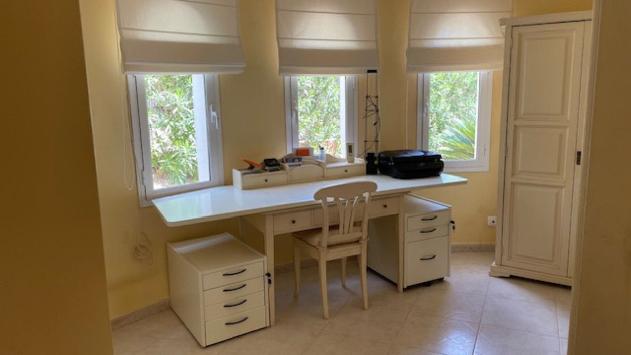 On the ground floor is a hallway leading to the spacious lounge with views to the pool and the sea beyond. A stylish open plan fitted kitchen with Bosch appliances leads off to a light, elegant dining room that also benefits from the wonderful views.