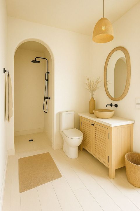 De villa beschikt over vier comfortabele slaapkamers, elk met een eigen badkamer. De master bedroom is voorzien van een open badkamer (of ensuite naar wens) en de overige drie slaapkamers hebben elk hun eigen charme, met openslaande ramen en directe toegang tot privéterrassen indien gewenst. Een extra berging maakt het plaatje compleet.