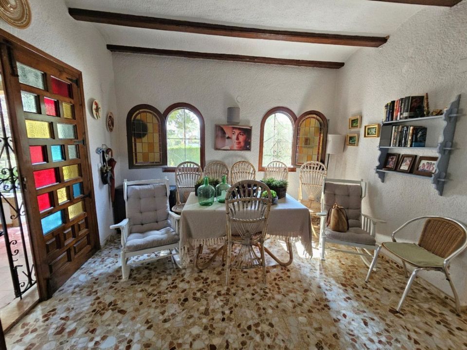 We present to you a beautiful traditional-style villa in Cap Martí, very close to Arenal beach. The villa consists of two floors; on the main floor, we find a spacious open naya shaped like an "L," featuring lovely Tosca stone arches, ideal for summer dinners and meals. From the naya, we enter the living-dining room, which is large yet very cozy, thanks to its wood fireplace, making the space perfect for winter. The kitchen is fully equipped and independent, with a pantry and a utility room or office, leading out to the garden and pool. Three double bedrooms, perfect for a pleasant rest, and two spacious bathrooms with showers complete this floor. On the lower floor, we have another three double bedrooms, with built-in wardrobes and ceiling fans, a full bathroom with a bathtub, and a second living room. The garden features some fruit trees and automatic irrigation, with a 10x5 m pool, inviting us to take a dip on those hot summer days, a barbecue, perfect for enjoying good times cooking in the garden, and covered parking for three cars. The garage has been renovated, with part of it offering a guest bedroom with access from the villa and the other part used as a storage room, all of which makes this villa a perfect place to enjoy with friends or family.