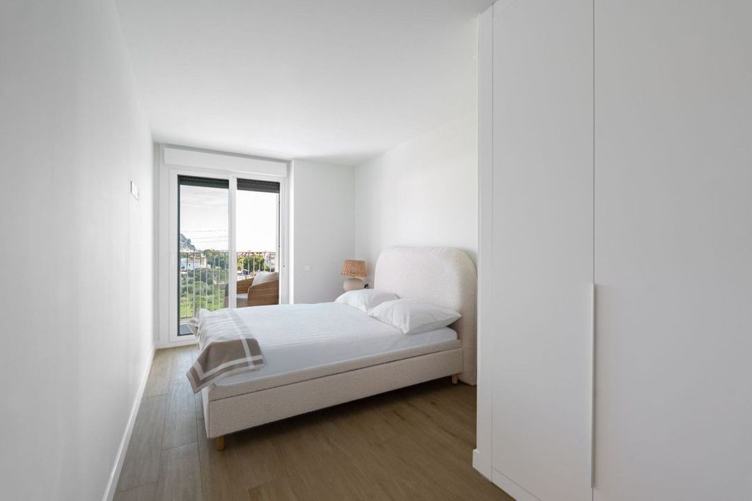 The apartment features a warm and inviting interior where natural light flows through the open-plan living and dining space. Large windows frame the surrounding landscape, enhancing the sense of openness and calm. The two bedrooms offer restful comfort, while the two well-appointed bathrooms provide modern convenience. Soft tones and contemporary finishes create an atmosphere that balances Mediterranean warmth with understated elegance.