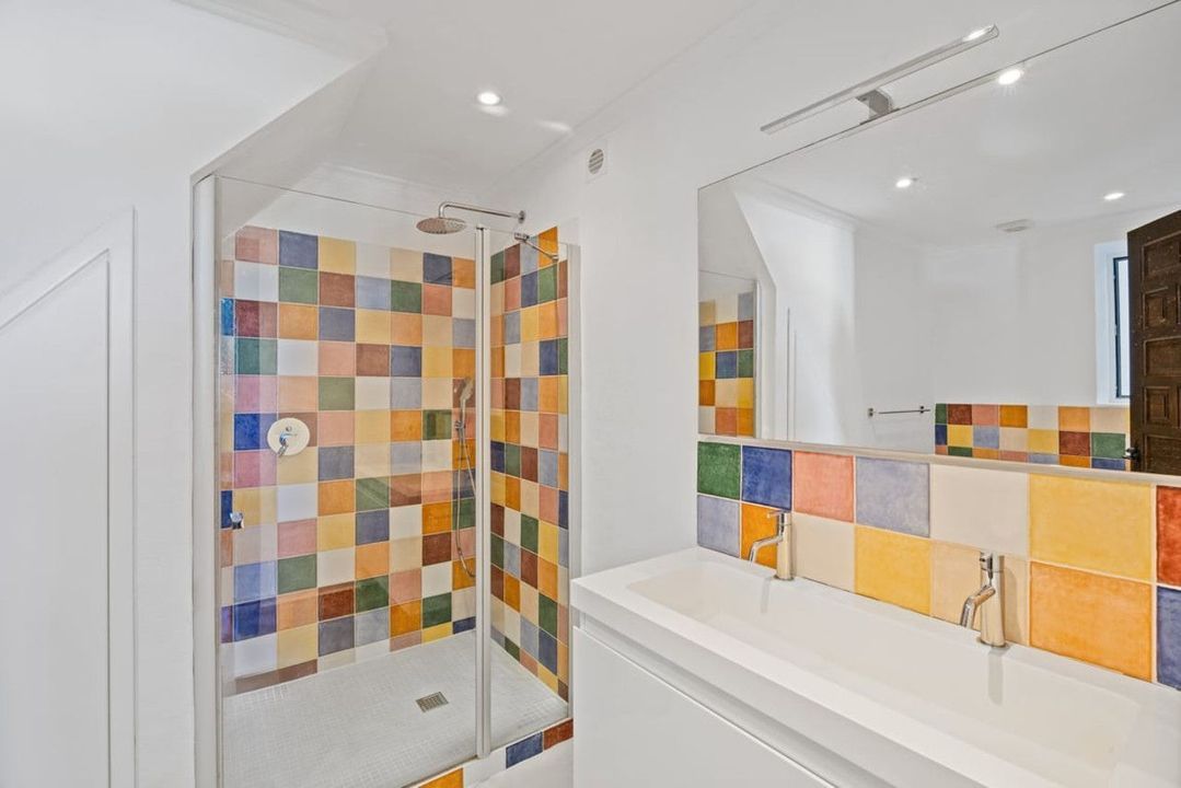 Op de bovenverdieping bevinden zich drie slaapkamers: twee ruime slaapkamers zijn gerenoveerd met moderne en-suite badkamers met dubbele wastafels; de derde slaapkamer heeft ingebouwde kasten en een aparte gemoderniseerde badkamer. Alle ramen zijn voorzien van rolluiken, dubbel glas en horren.
