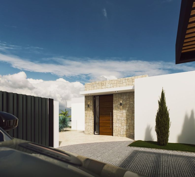 Op een licht hellend perceel van 1069 m² bevindt zich deze moderne villa in een exclusieve omgeving met prachtig uitzicht op de Middellandse Zee en de bergen.